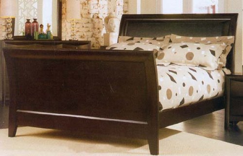 Impeccable in style this beautiful Phoenix king size sleigh bed features a cappuccino finish. Sleek and efficient the bed offers tapered square legs with the traditional solid curved head and footboard and includes the side rails. Mattress and bedding sold separately. Features leather like inset headboard.